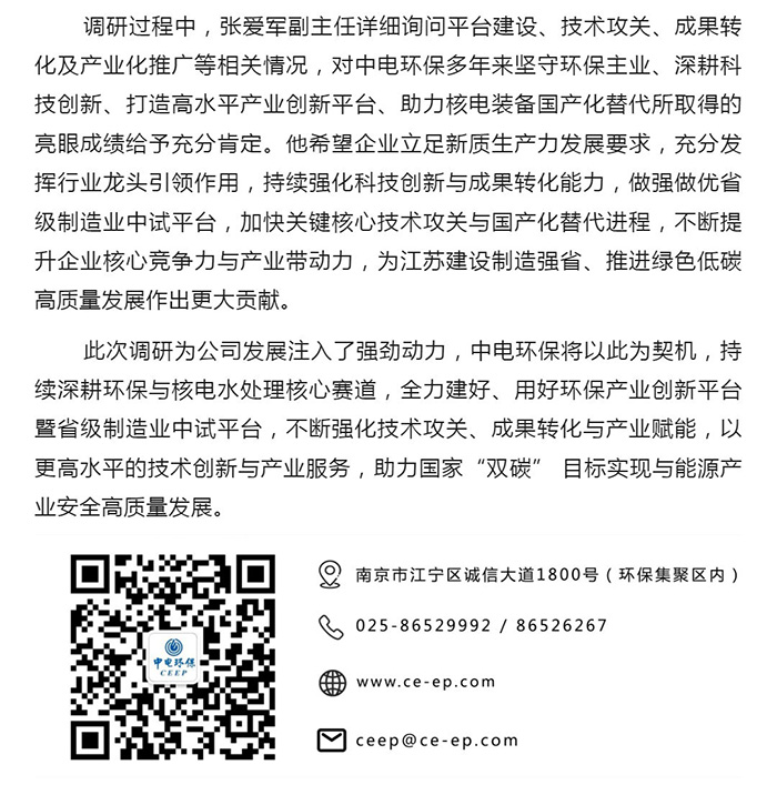 中電環(huán)保股份有限公司是南京市首家環(huán)保上市公司(股票簡稱:中電環(huán)保,股票代碼:300172),南京環(huán)保產業(yè)協會會長單位,國家級聯盟理事長單位,是生態(tài)環(huán)境治理服務商,主營(3+1):水務、固危廢、煙氣治理及產業(yè)創(chuàng)新平臺,包括:工業(yè)水處理、污水處理及水環(huán)境綜合治理;固危廢土壤、污泥餐廚垃圾處理;煙氣及VOCS治理;智慧環(huán)保;高端裝備等。
